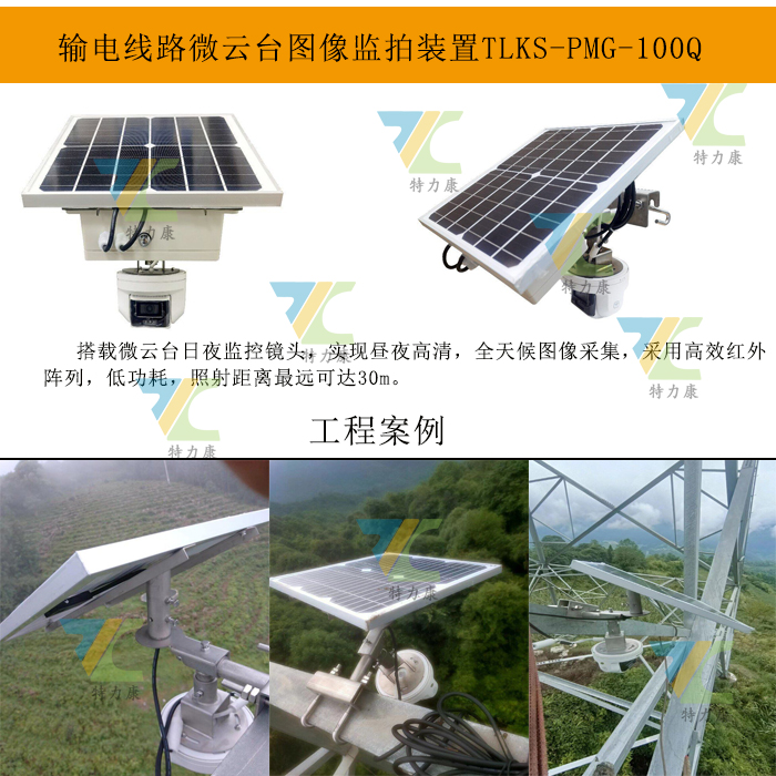 TLKS-PMG-100Q輸電線路微云臺視頻在線監測裝置適用于輸電線路、配電等功耗低或太陽能供電的場所,為電力行業的管理和維護提供了強有力的工具。