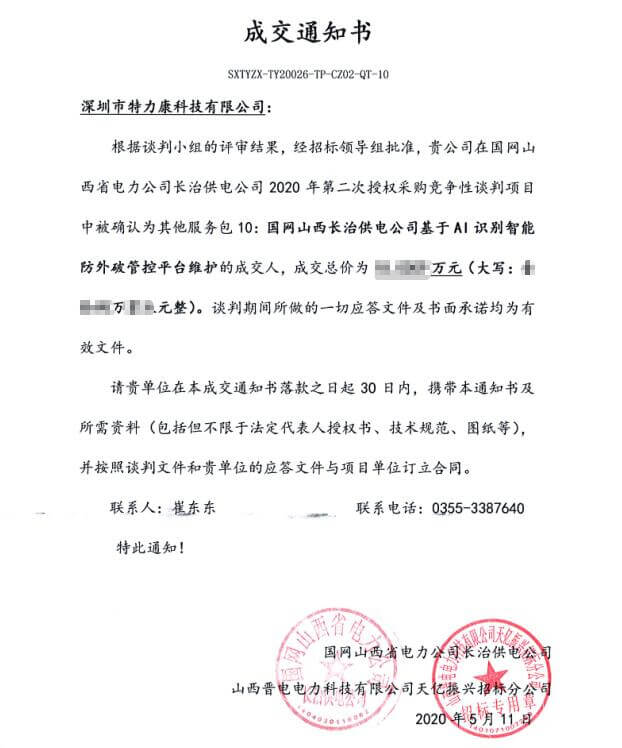 特力康中標國網黑龍江送變電工程公司的2024年度第18次物資類競爭性談判采購項目——慶陽驅鳥器物資框 特力康中標國網甘肅省電力公司省管產業單位2024年第五次物資競爭性談判授權采購項目 中標喜訊:深圳市特力康科技有限公司成功入圍許繼集團綜合能源公司輸電線路視頻在線監測裝置模塊集采項目 中標喜訊:特力康成功中標國網重慶市電力公司渝中一片區項目 特力康成功中標國網天津市電力公司2024年第二次?物?資招標項目 特力康中標國網安徽省電力有限公司蕪湖供電公司2024年3月非物質采購項目 特力康輸電線路智能AI多目監控裝置+傾斜監測守護山西輸電生命線 鄂網“全景眼”:特力康一體化視頻監控系統守護輸電線路 山東電網 “穩塔哨兵”:特力康智能桿塔傾斜監測預警裝置筑牢電力桿塔安全防線 特力康科技輸電線路高清圖像監控裝置,為河南輸電通道筑牢安全屏障 黃土高原護塔穩:特力康傾斜監測裝置為山西電網筑牢根基 黔山冰防線:特力康 “數據 + 圖像” 雙監測守護貴州輸電線路 戈壁林區的 “火情哨兵”:特力康紅外熱成像裝置守護甘肅輸電線路 內蒙電網裝上 “舞動監測眼”:特力康輸電線路防舞動監測系統守護線路安全 寧夏配電線路安裝了我司防外破電子化智能警示牌