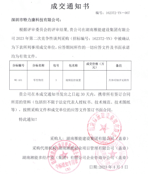 特力康中標國網黑龍江送變電工程公司的2024年度第18次物資類競爭性談判采購項目——慶陽驅鳥器物資框 特力康中標國網甘肅省電力公司省管產業單位2024年第五次物資競爭性談判授權采購項目 中標喜訊:深圳市特力康科技有限公司成功入圍許繼集團綜合能源公司輸電線路視頻在線監測裝置模塊集采項目 中標喜訊:特力康成功中標國網重慶市電力公司渝中一片區項目 特力康成功中標國網天津市電力公司2024年第二次?物?資招標項目 特力康中標國網安徽省電力有限公司蕪湖供電公司2024年3月非物質采購項目 特力康輸電線路智能AI多目監控裝置+傾斜監測守護山西輸電生命線 鄂網“全景眼”:特力康一體化視頻監控系統守護輸電線路 山東電網 “穩塔哨兵”:特力康智能桿塔傾斜監測預警裝置筑牢電力桿塔安全防線 特力康科技輸電線路高清圖像監控裝置,為河南輸電通道筑牢安全屏障 黃土高原護塔穩:特力康傾斜監測裝置為山西電網筑牢根基 黔山冰防線:特力康 “數據 + 圖像” 雙監測守護貴州輸電線路 戈壁林區的 “火情哨兵”:特力康紅外熱成像裝置守護甘肅輸電線路 內蒙電網裝上 “舞動監測眼”:特力康輸電線路防舞動監測系統守護線路安全 寧夏配電線路安裝了我司防外破電子化智能警示牌